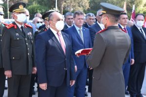 Bu çerçevede bu sabah 09.00’da Lefkoşa’daki Atatürk Anıtı’nda tören düzenlendi. Törene Cumhurbaşkanı Ersin Tatar, Cumhuriyet Meclisi Başkanı Zorlu Töre, Başbakan Ünal Üstel, Yüksek Mahkeme Başkanı Narin Ferdi Şefik, 2’nci Cumhurbaşkanı Mehmet Ali Talat, Türkiye Cumhuriyeti Lefkoşa Büyükelçisi Ali Murat Başçeri, KTBK Komutanı Tümgeneral Sezai Öztürk, Güvenlik Kuvvetleri Komutanı Tümgeneral Zorlu Topaloğlu, Ana Muhalefet Cumhuriyetçi Türk Partisi Genel Başkanı Tufan Erhürman, bakanlar, milletvekilleri, belediye başkanları, muharip dernek temsilcileri, öğrenciler ve vatandaşlar katıldı.