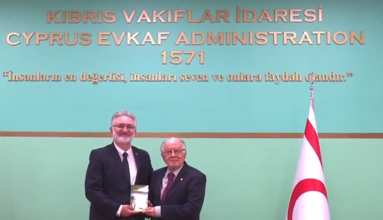 Atun toplantıda kitabını, Kıbrıs Vakıflar İdaresi Genel Müdürü Prof. Dr. İbrahim Benter’e takdim etti..