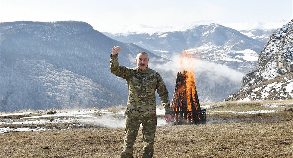 Aliyev, eşi Mihriban Aliyeva ve kızı Leyla Aliyeva ile Şuşa’nın güneyindeki Cıdır Ovası’nda, Nevruz ateşini yaktıktan sonra ulusa seslendi.