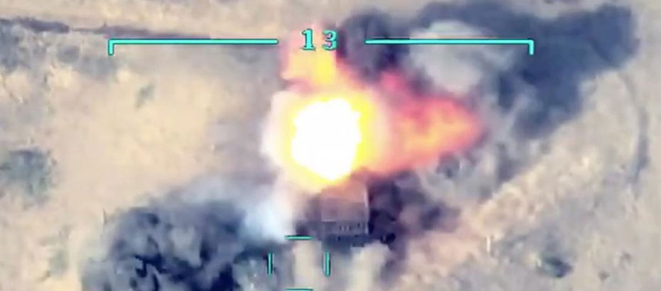 Bakanlık, Ermenistan ordusunun tank, top ve füze sistemlerine düzenlenen saldırıların havadan çekilmiş görüntülerini de paylaştı.