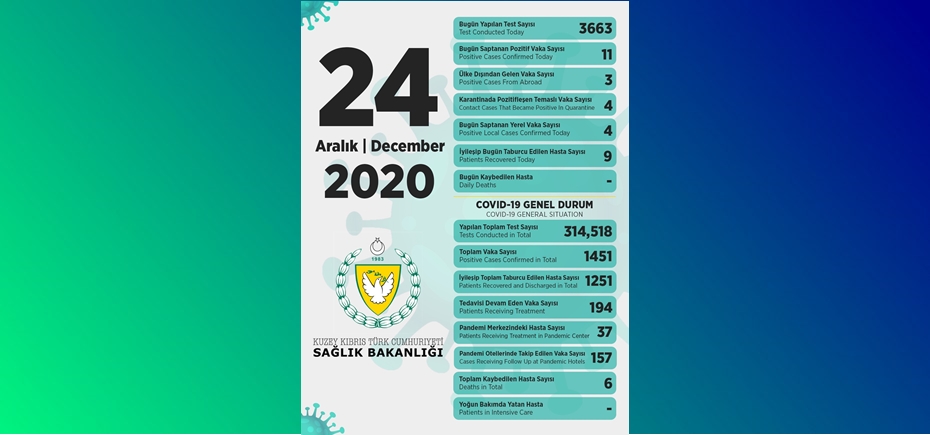 24 Aralık 2020 Covid-19 genel durumu şöyle: