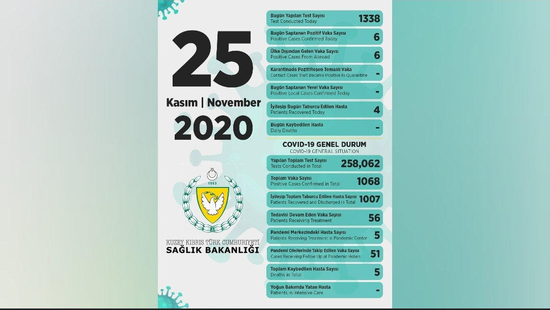 25 Kasım 2020 Covid-19 genel durumu şöyle;