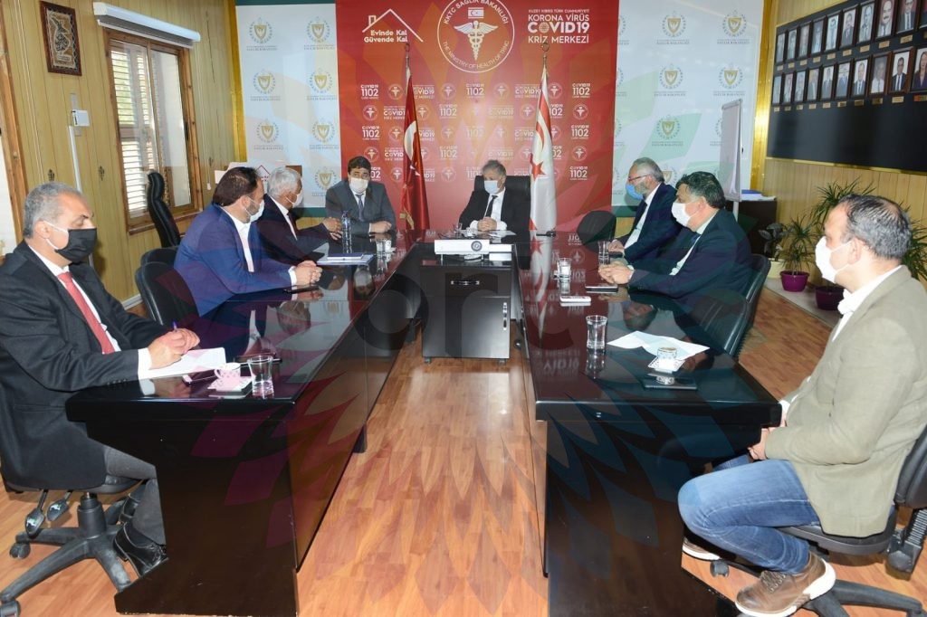 Sağlık Bakanlığı’nda yapılan toplantıda Sağlık Bakanı Dr. Ali Pilli ve bakanlık yetkilileri, K.T. Belediyeler Birliği ve Güzelyurt Belediye Başkanı Mahmut Özçınar, Lefkoşa Türk Belediyesi Başkanı Mehmet Harmancı, Girne Belediye Başkanı Nidai Güngördü, İskele Belediye Başkanı Hasan Sadıkoğlu, Beyarmudu Belediye Başkanı İlker Edip ve Belediyeler Birliği Genel Koordinatörü Hüseyin Köle yer aldı.