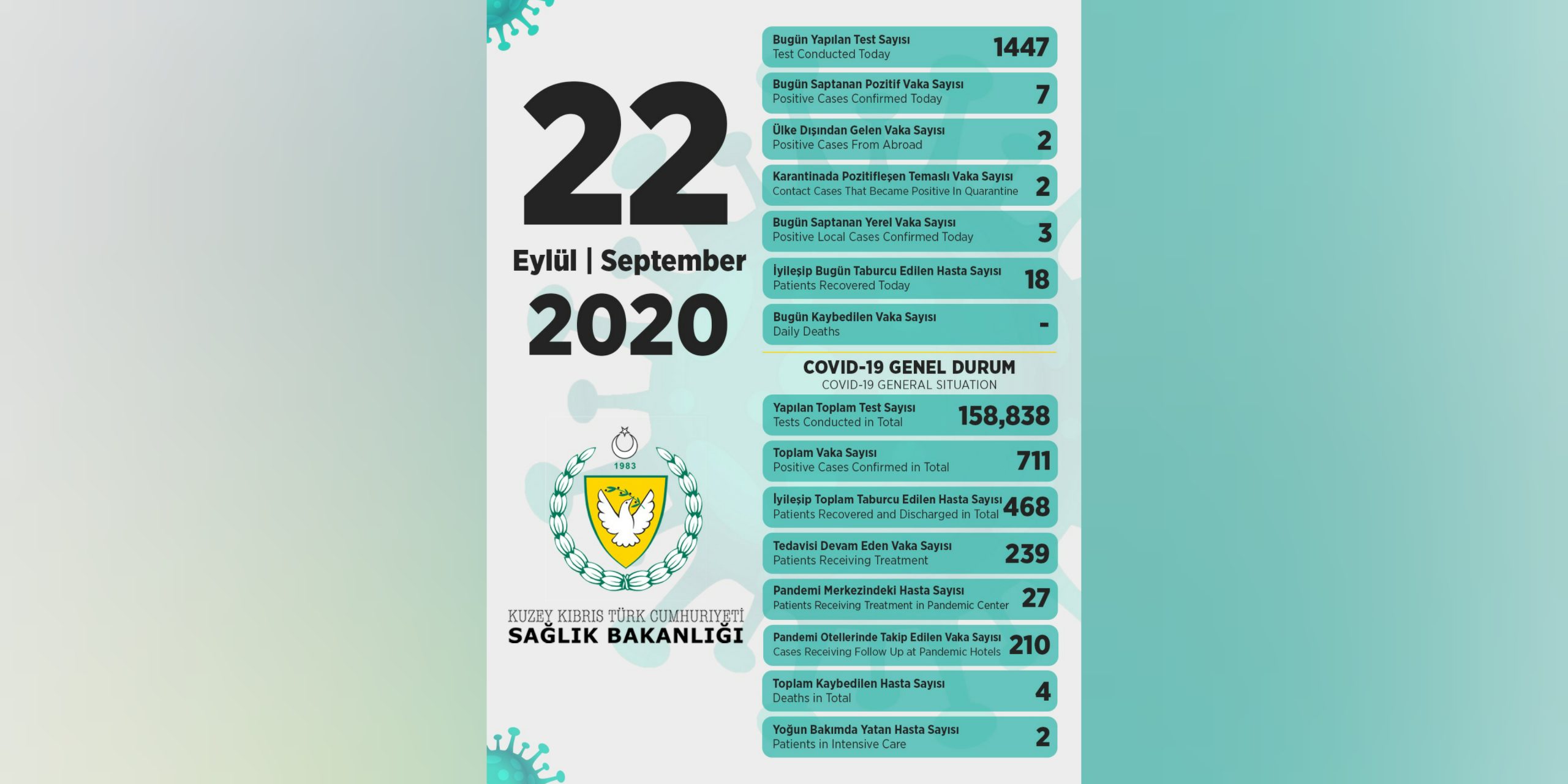 22 Eylül 2020 Covid-19 genel durumu şöyle;