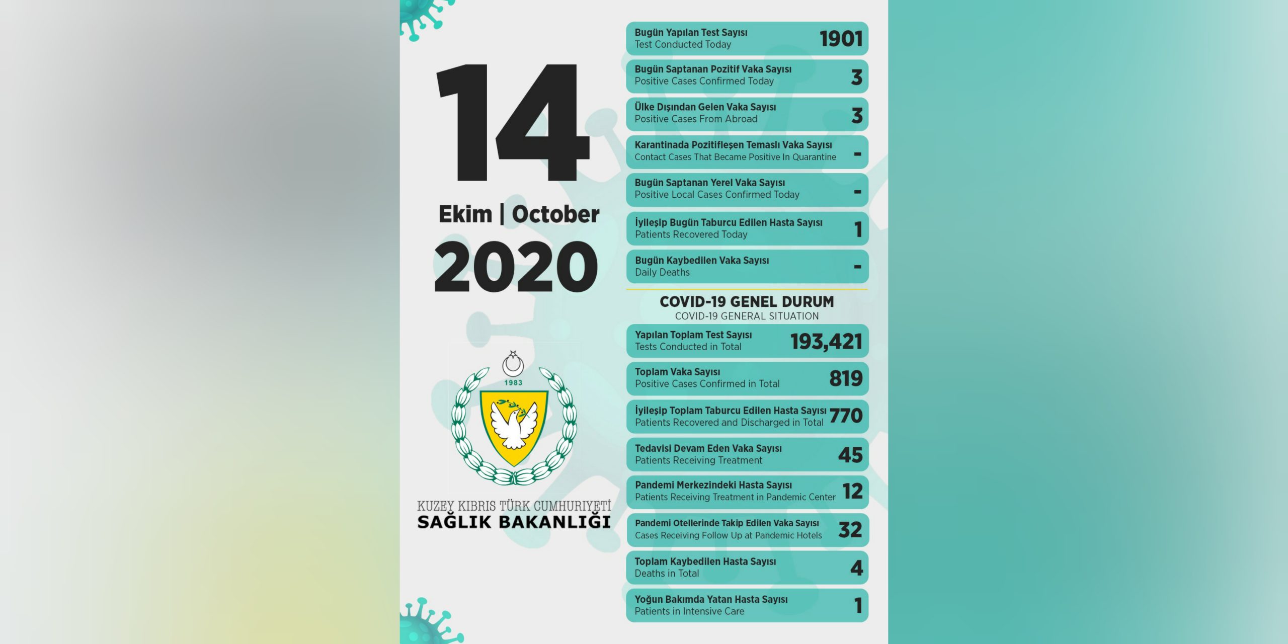 14 Ekim 2020 Covid-19 genel durumu şöyle;