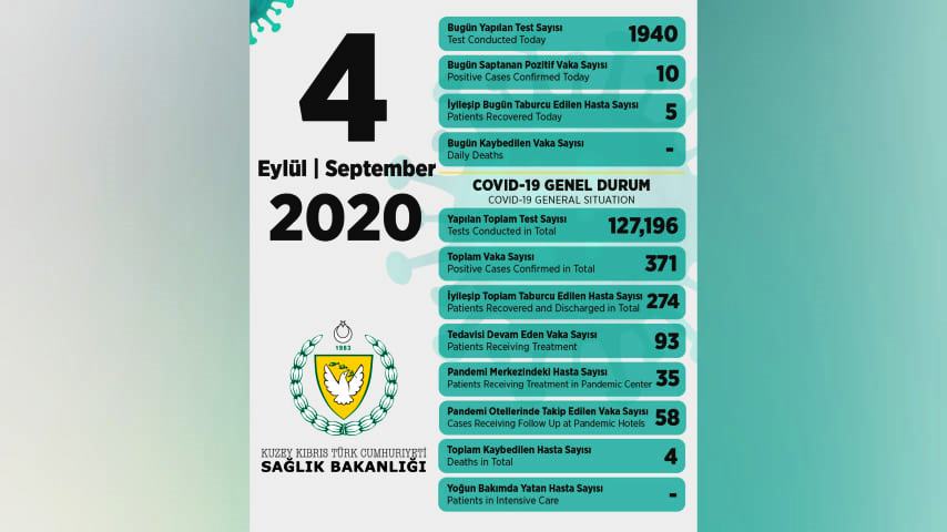 4 Eylül 2020 Covid-19 genel durumu şöyle;