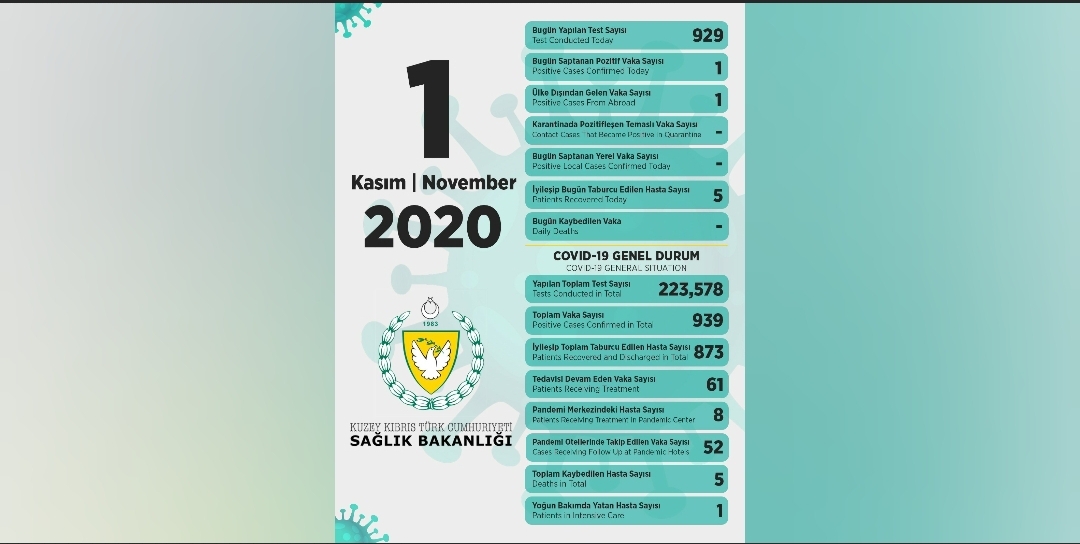 1 Kasım 2020 Covid-19 genel durumu şöyle;