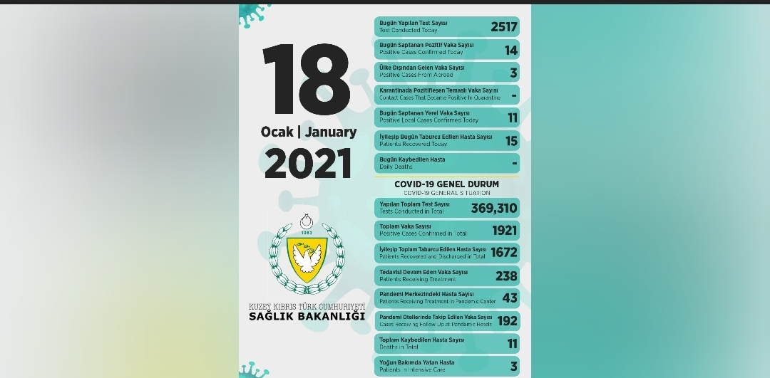 18 Ocak 2021 Covid-19 genel durumu şöyle:
