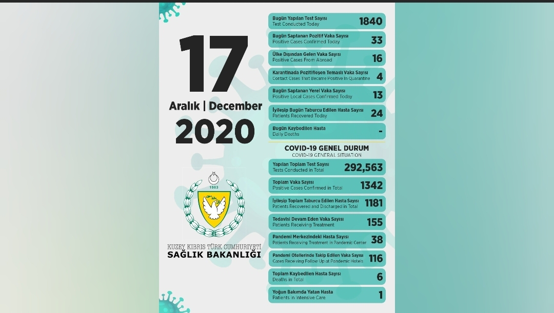 17 Aralık 2020 Covid-19 genel durumu şöyle: