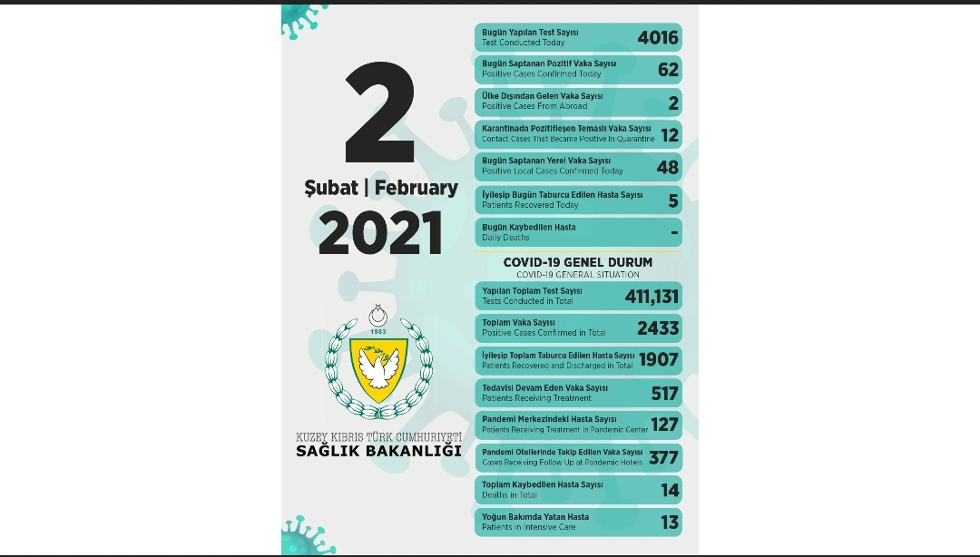 2 Şubat 2021 Covid-19 genel durumu şöyle: