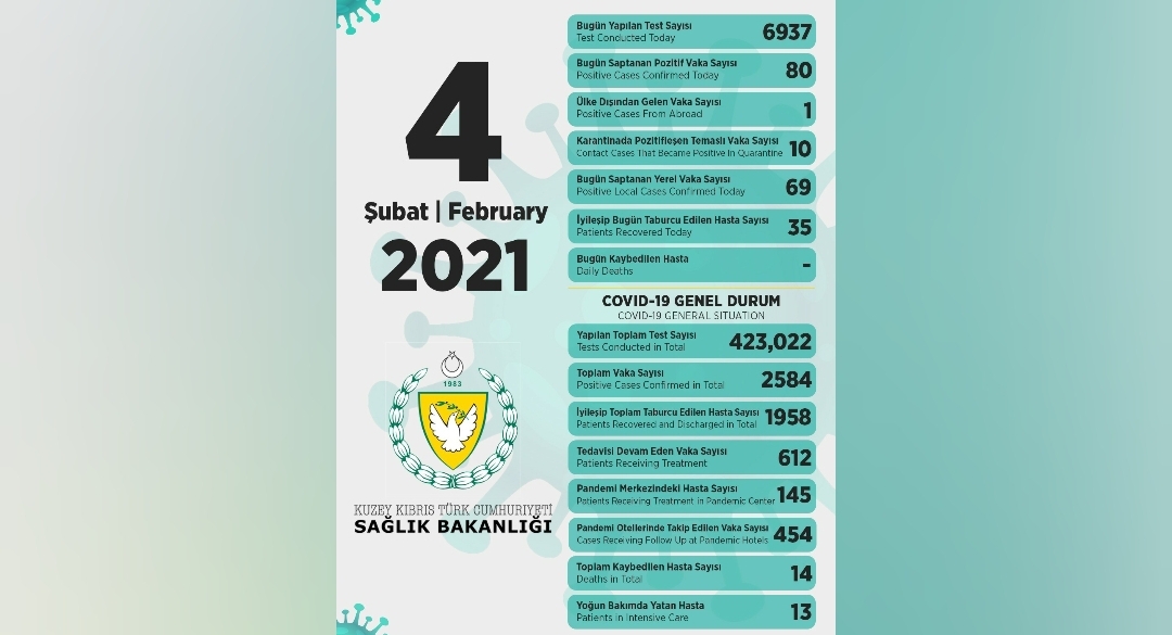 4 Şubat 2021 Covid-19 genel durumu şöyle: