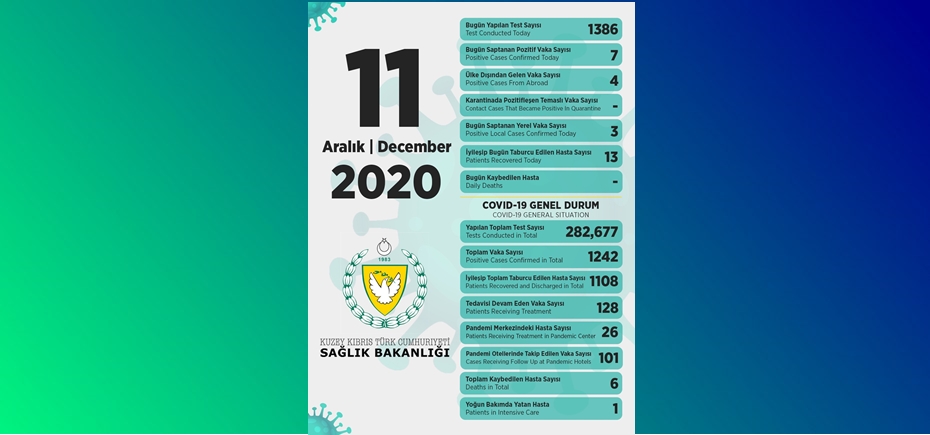 11 Aralık 2020 Covid-19 genel durumu şöyle;