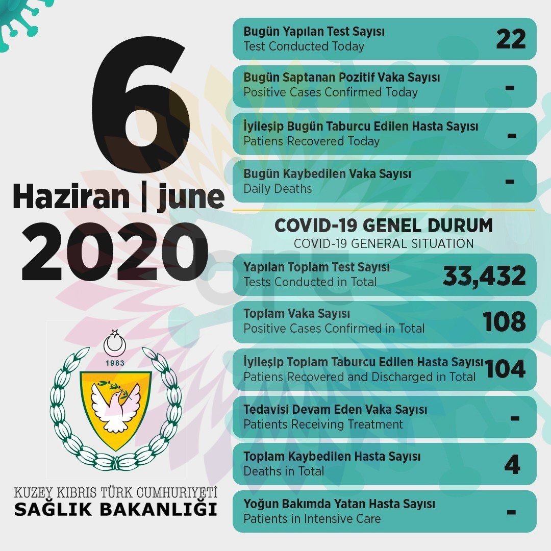 6 Haziran 2020 Covid-19 genel durumu şöyle;