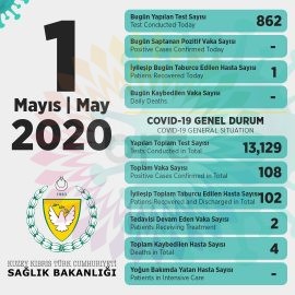 Sağlık Bakanı Dr Ali Pilli, son 24 saatte yapılan test sayısının 862 olduğunu, pozitif vakaya rastlanmadığını, bir kişinin tedavisini tamamlayarak taburcu edildiğini açıkladı.