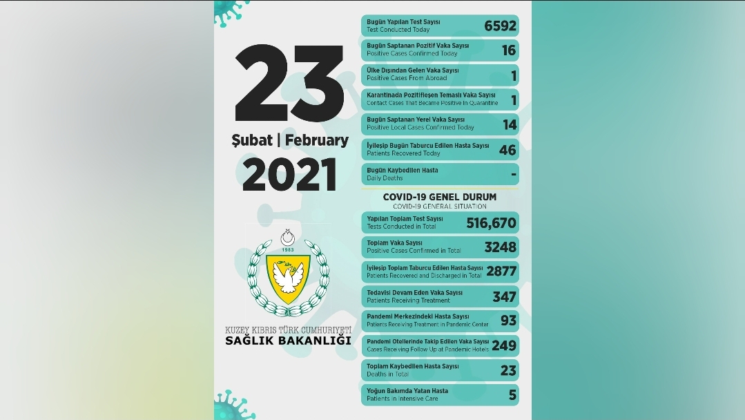 23 Şubat 2021 Covid-19 genel durumu şöyle: