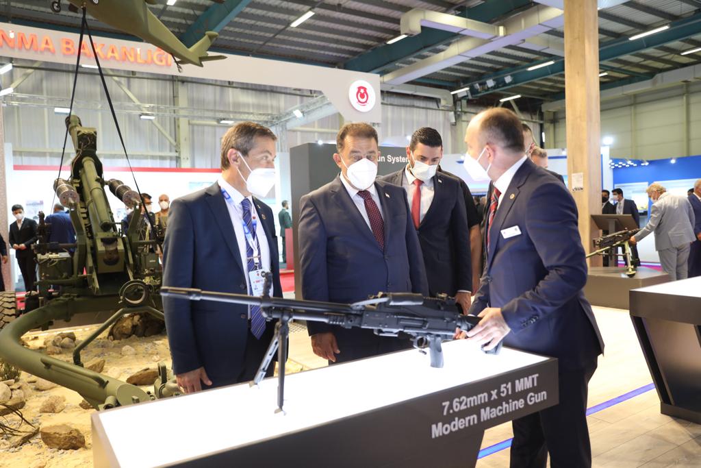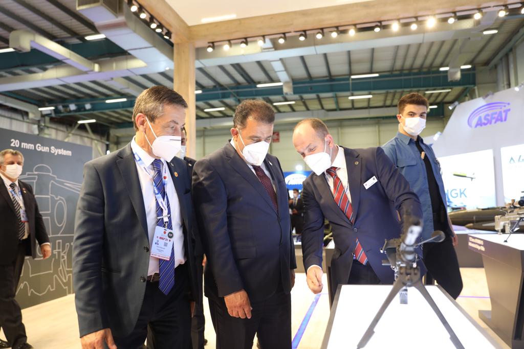 Saner, fuarda sergilenen savunma sanayi teçhizat ve ekipmanları ilgili bilgi aldı.