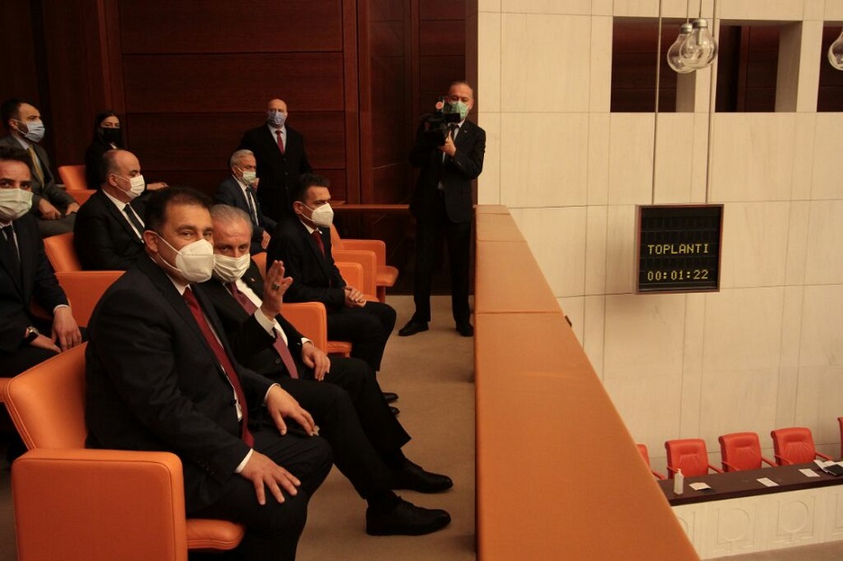 Ankara’daki temaslarını sürdüren Başbakan Ersan Saner, TBMM Başkanı Şentop’la görüşmesinin ardından bir süre TBMM Genel Kurulu toplantısı izledi.