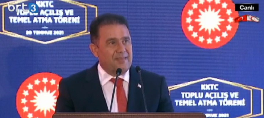 “Sayın Cumhurbaşkanımız Erdoğan; Sizin Kuzey Kıbrıs Türk Cumhuriyeti Meclisi ile tören alanında yapmış olduğunuz konuşmalar, şu anda burada bulunma sebebimiz olan temel atma ve açılış törenleri Kuzey Kıbrıs Türk Cumhuriyeti için yep yeni ve güçlü bir dönemin başladığını göstermektedir.