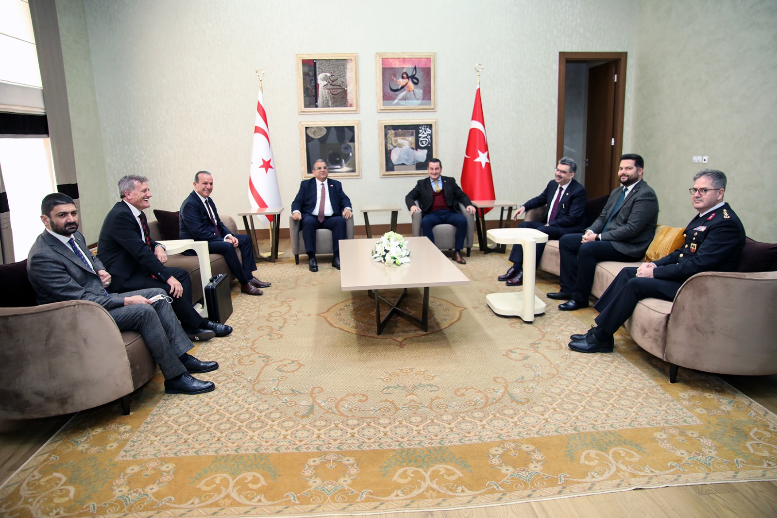 Başbakan Faiz Sucuoğlu ve heyeti, Ankara Esenboğa Havalimanı’nda TC – KKTC Parlamentolararası Dostluk Grubu Başkanı AK PARTİ Milletvekili Orhan Erdem, Vali Yardımcısı Murat Soylu, KKTC Ankara Büyükelçisi Kemal Köprülü, ve diğer üst düzey askeri ve sivil yetkililer karşıladı.
