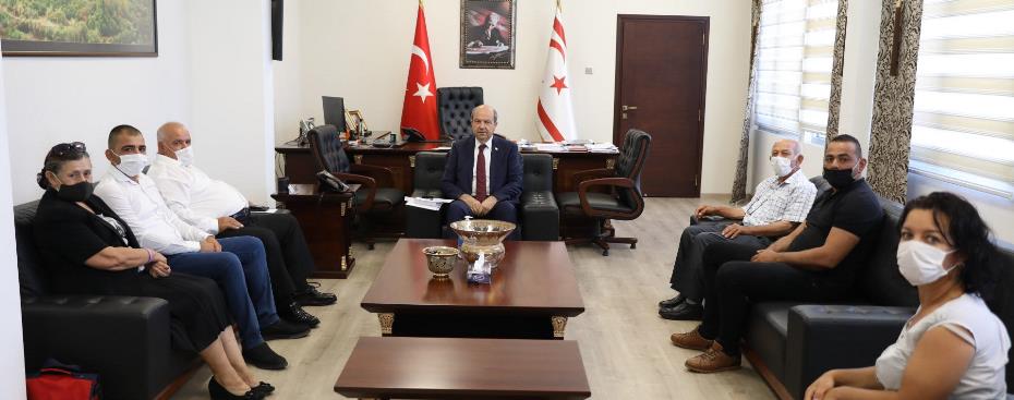 Başbakan Ersin Tatar Akıncılar Belediye Başkanı Hasan Barbaros ve Akıncılar muhtarı ve belediye azalarından oluşan bir heyeti kabul ederek bir süre görüştü.