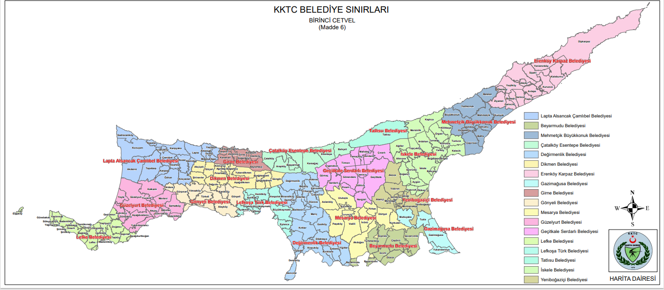 Gönyeli Belediyesi (7 köy)- Alayköy, Gönyeli, Kanlıköy, Türkeli, Yılmazköy, Gürpınar, İkidere
