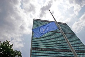 BM Cenevre Ofisi’nin girişindeki BM bayrağının sabah saatlerinde yarıya indirildiği görüldü.