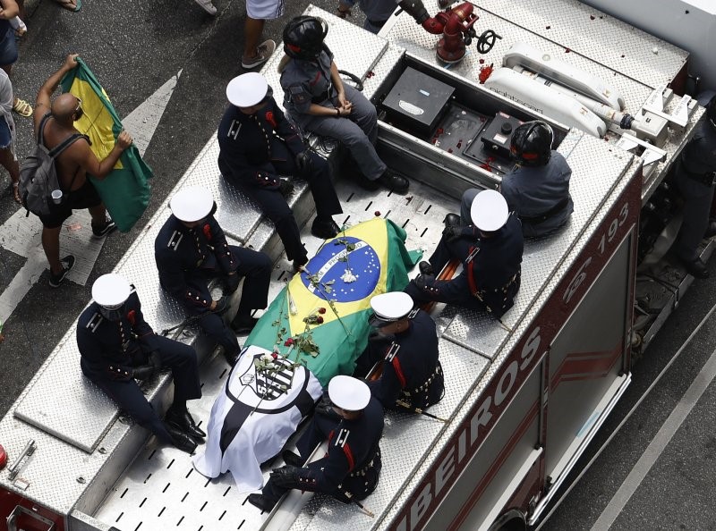 Hayranlarının oluşturduğu uzun kortej ve güvenlik güçlerinin eşliğinde götürülen Pele’nin naaşı, babasının ve kardeşinin de bulunduğu 14 katlı mezarlığın ilk katında kendisi için özel olarak tasarlanan kabre defnedildi.