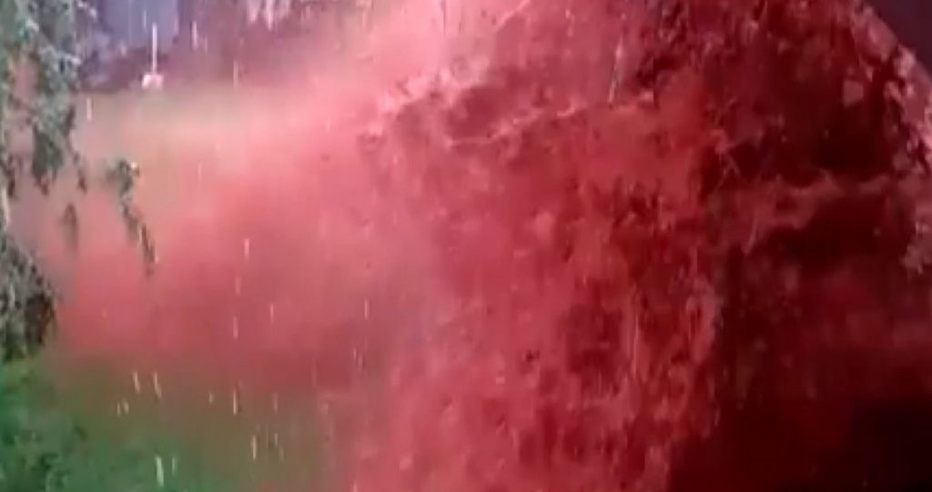 Çamurlu sel suyu bir evi yerle bir etti. O evdeki adam, sel suyunu son anda fark ederek kaçtı.