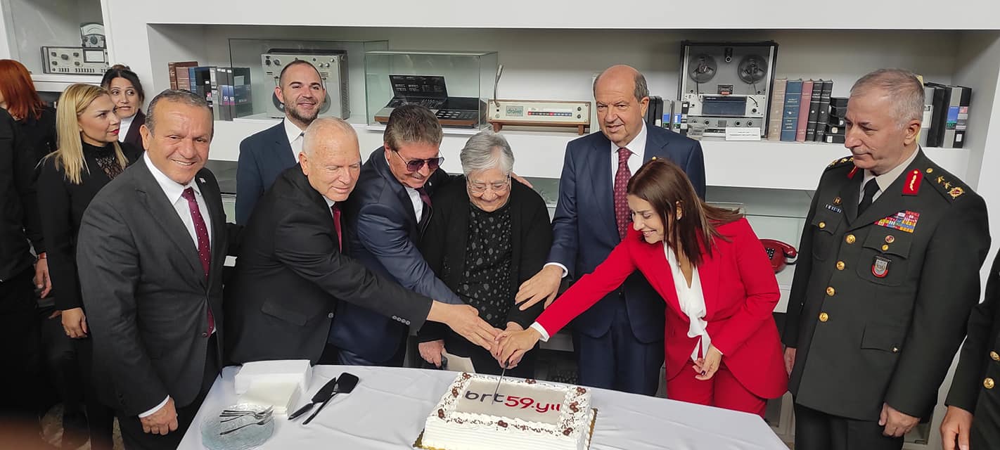 Bayrak Radyo Televizyon Kurumu’nun 59’uncu kuruluş yıldönümü resepsiyonunun sonunda 59’uncu yıl pastası kesildi.