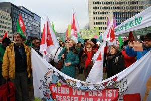 Brüksel merkezli Avrupa Kamu Hizmeti Sendikaları Federasyonu (EPSU), Avrupa Birliği (AB) sağlık bakanlarının toplantısı sırasında protesto yürüyüşü yaptı.