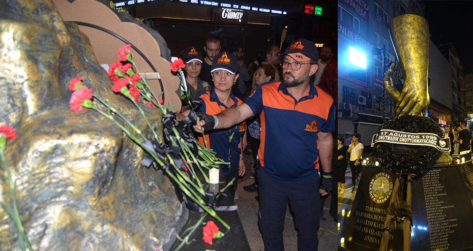 2 bin 504 kişinin yaşamını yitirdiği, 10 bin 201 bina ve iş yerinin yıkıldığı Yalova’da düzenlenen etkinlik, 15 Temmuz Demokrasi ve Cumhuriyet Meydanında bulunan Deprem Anıtı’na kadar gerçekleştirilen ‘sessiz yürüyüşle’ başladı.