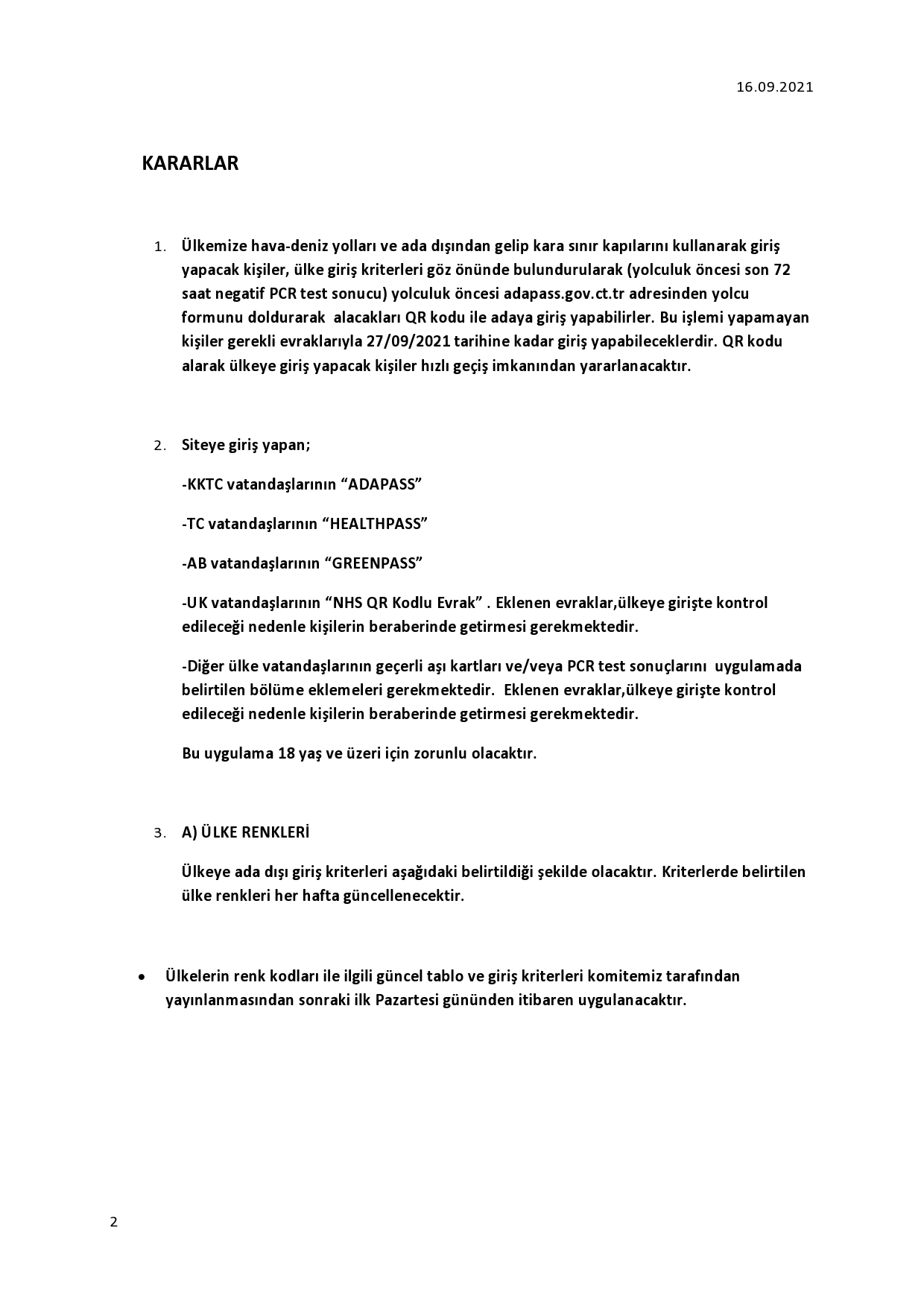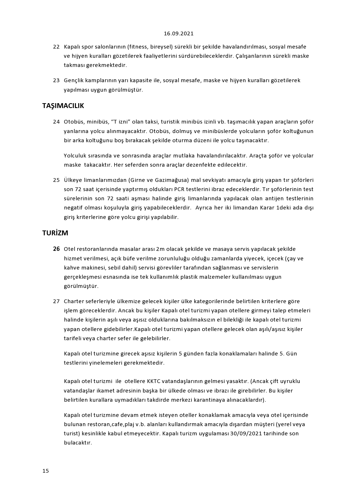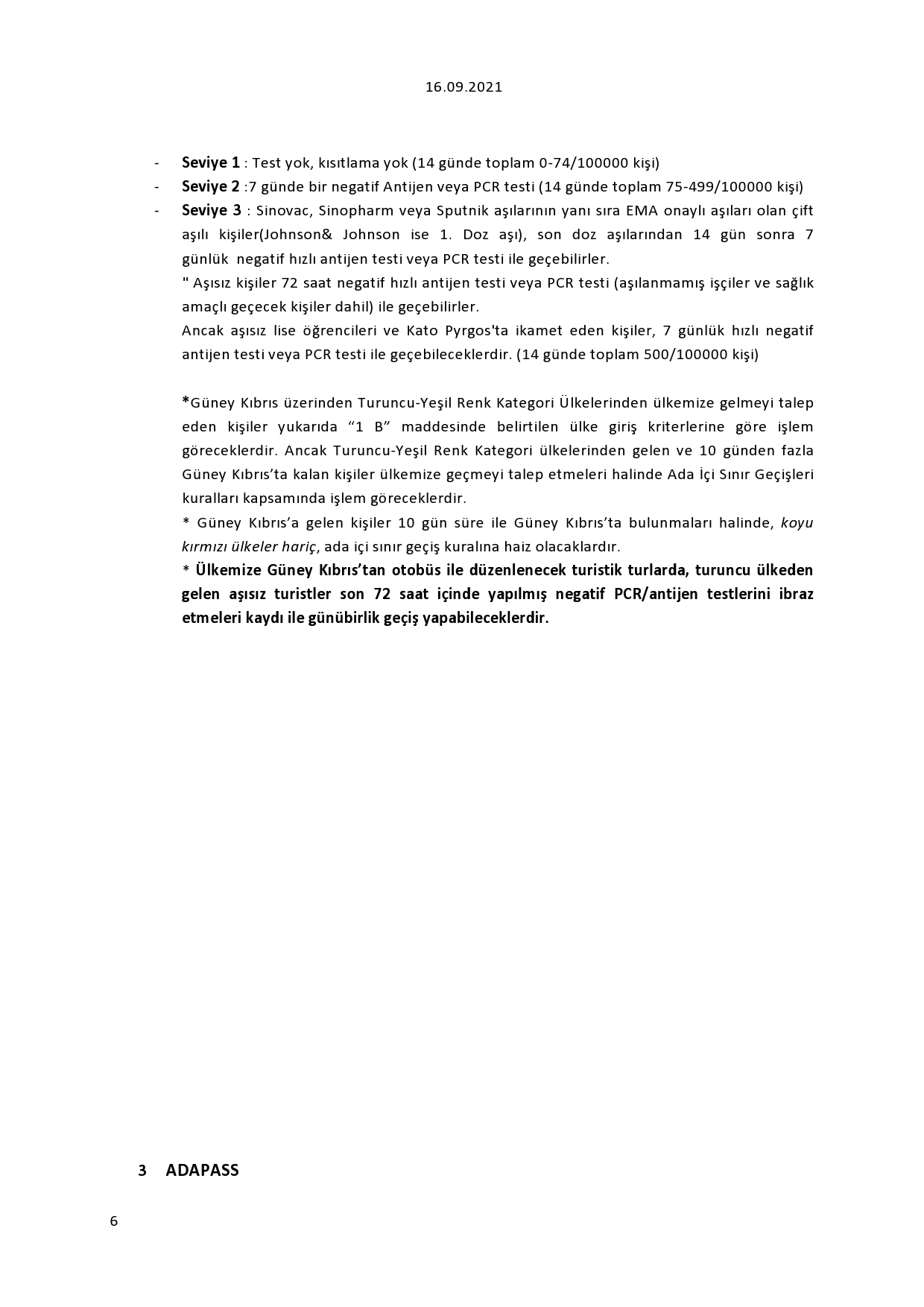 Bakanlıktan yapılan açıklamaya göre, ülkemize Güney Kıbrıs’tan otobüs ile düzenlenecek turistik turlarda, turuncu ülkeden gelen aşısız turistler son 72 saat içinde yapılmış negatif PCR/antijen testlerini ibraz etmeleri kaydı ile günübirlik geçiş yapabilecekler.