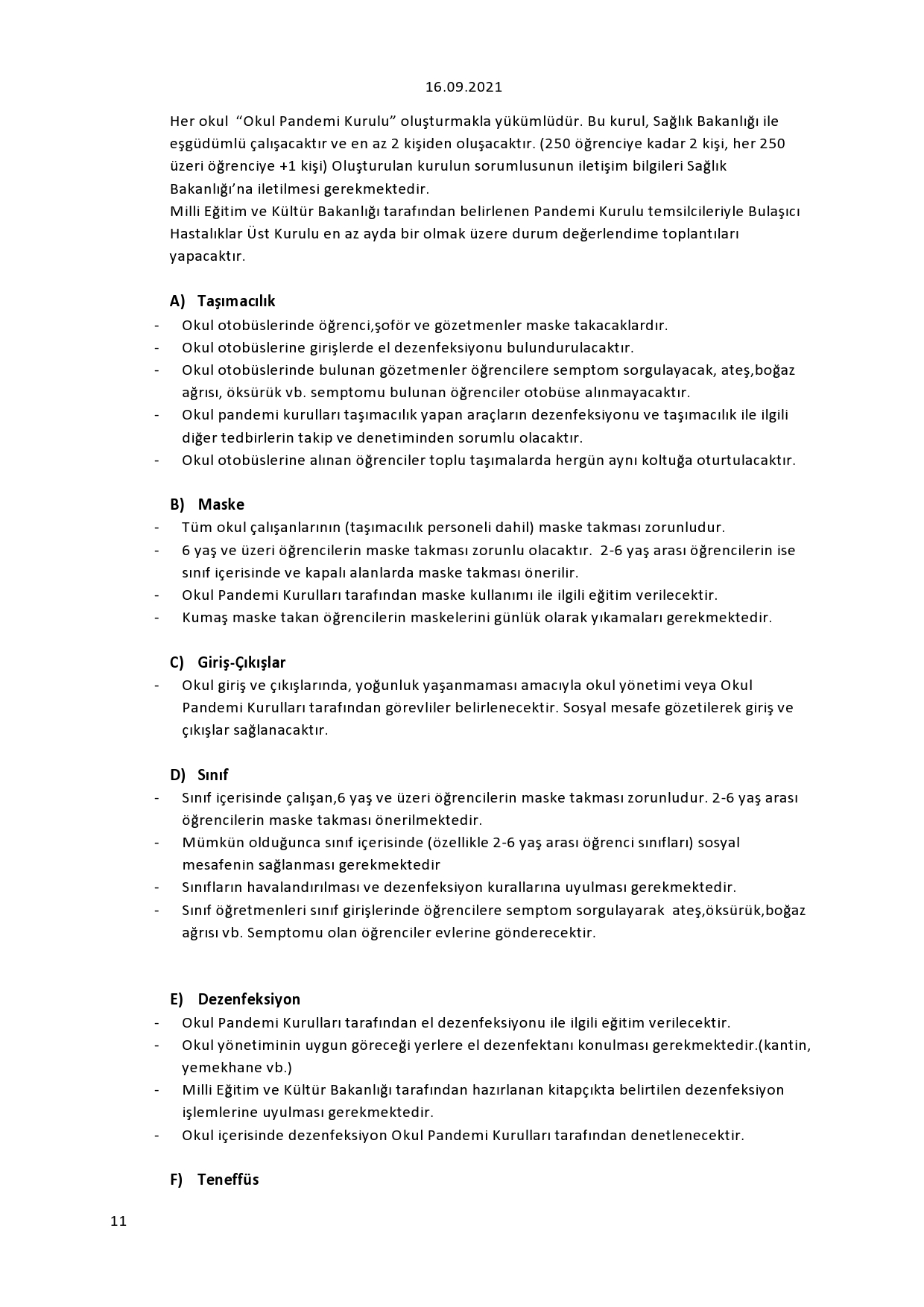 Açıklamada ayrıca, “Bu süreçte kişiler bireysel olarak yakın veya uzak temaslı olduklarına karar veremezler. Yakın temas veya temas durumuna Sağlık Bakanlığı Temaslı Takip Birimi karar verecek ve bu karar okul yönetimi aracılığı ile sınıfa bildirilecektir” denilerek, yapılan taramanın sonunda sınıfta 3 kişiden az kişide pcr pozitif çıkması halinde ise bu sınıf sadece temaslı sayılacak ve maskelerini takmak ve diğer sınıflar ile temas etmemek sureti ile okulda eğitimlerine devam edecek.