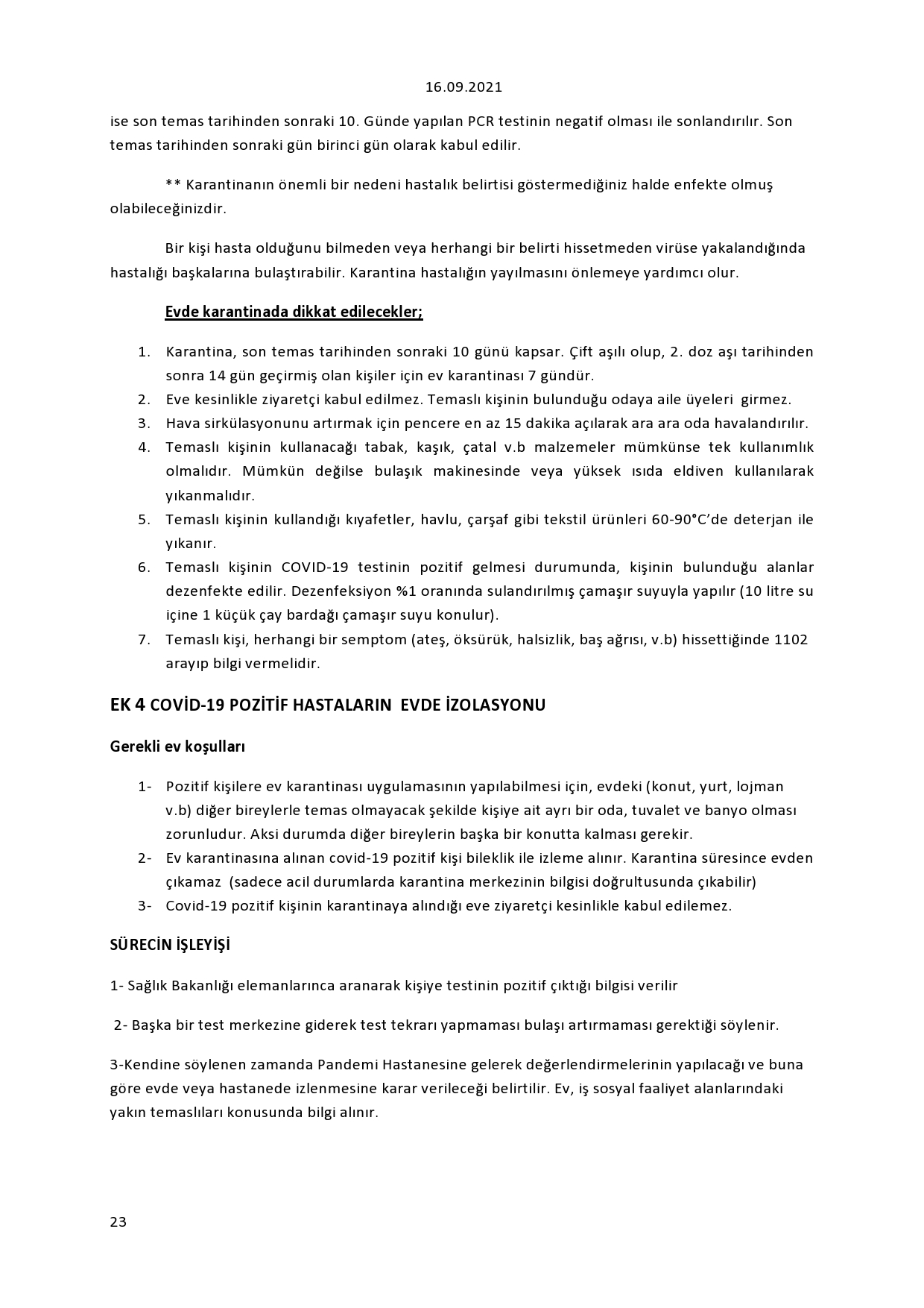 İzolasyon süresi ve bu sürede ne zaman pcr testi yapılacağı hakkında temaslı ekibi okula bilgi verecek ve bu sürede öğrenciler uzaktan eğitime katılacak.