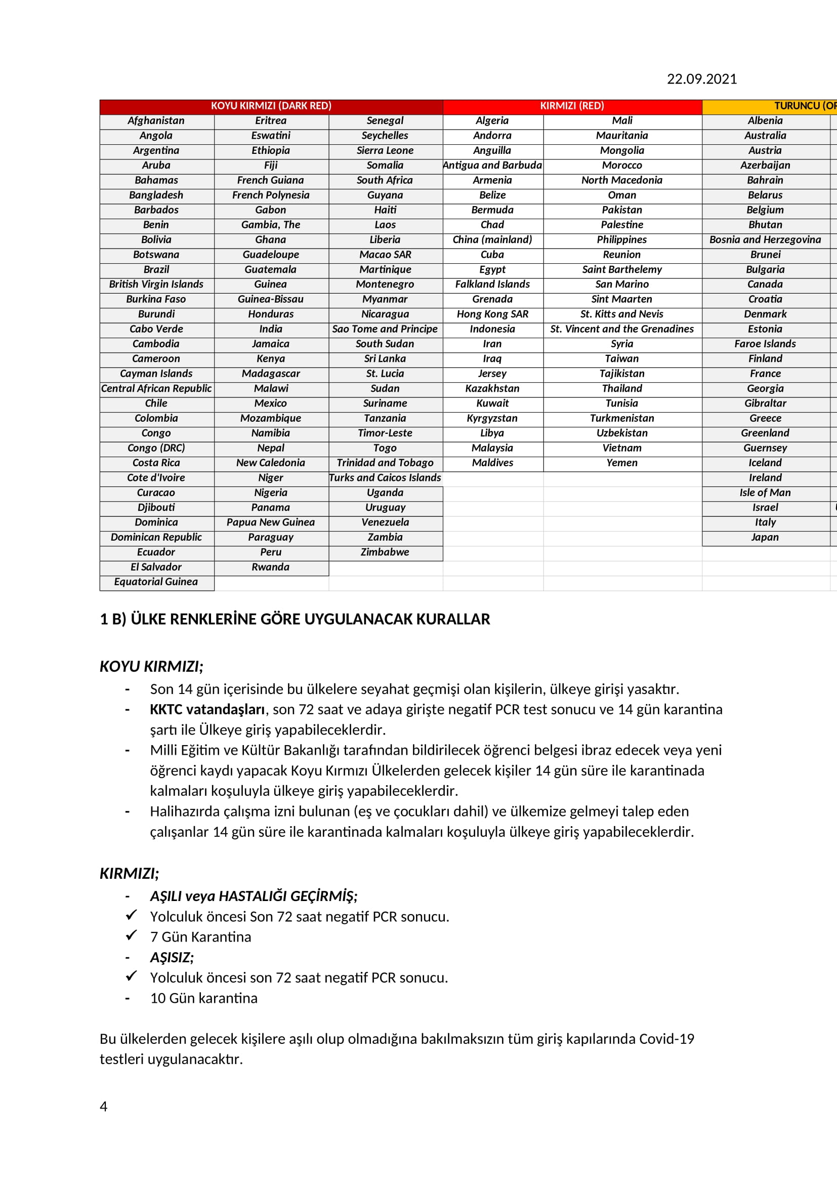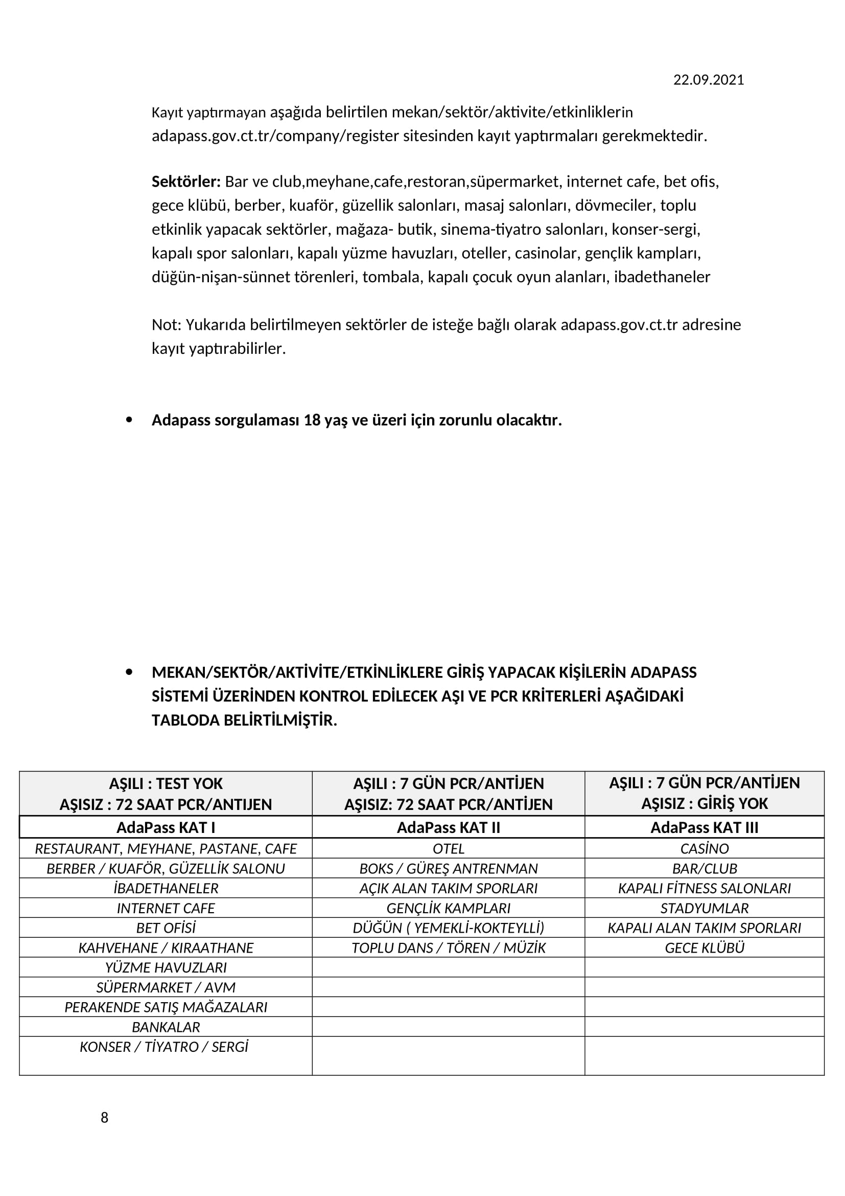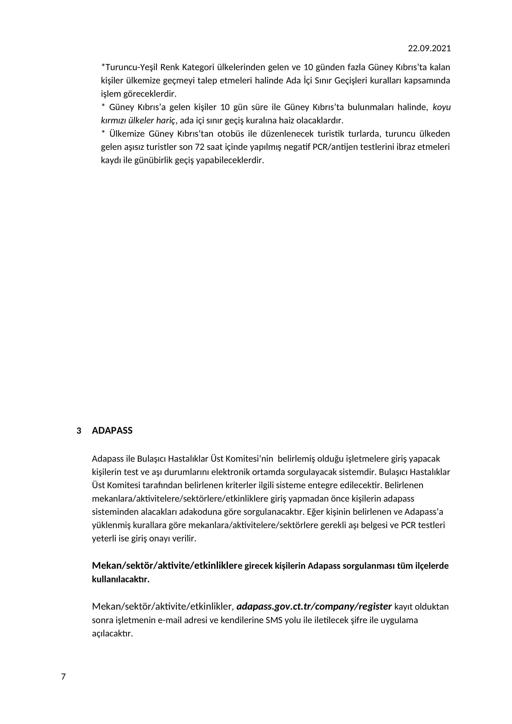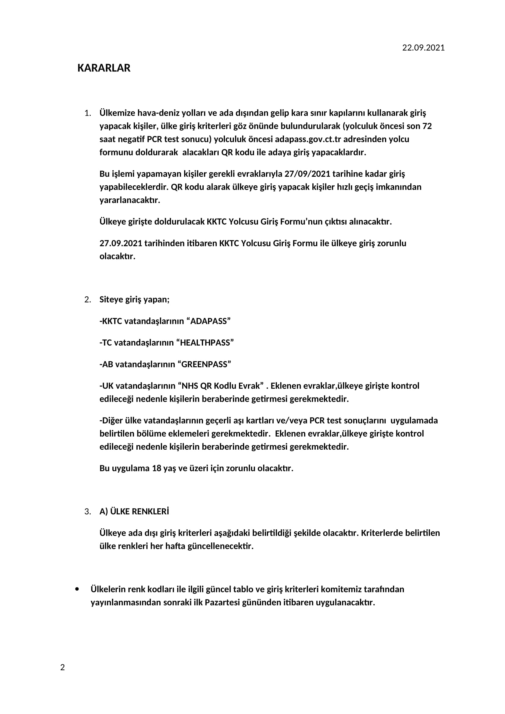 Pazartesi gününden itibaren ise KKTC Yolcusu Giriş Formu ile ülkeye giriş zorunlu olacak.KKTC vatandaşlarından “ADAPASS”, TC vatandaşlarından “HEALTHPASS”