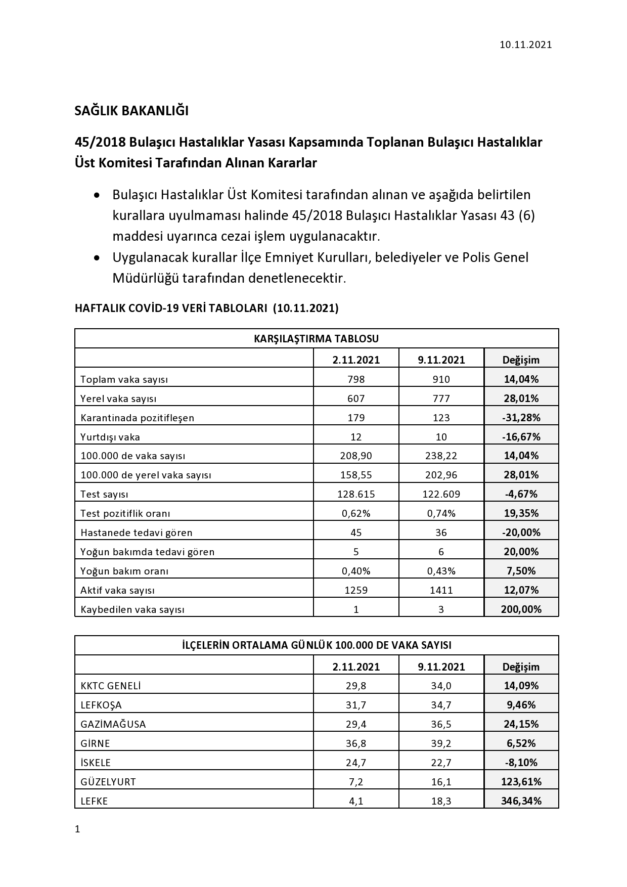İşte Bulaşıcı Hastalıklar Üst Kurulu kararları: