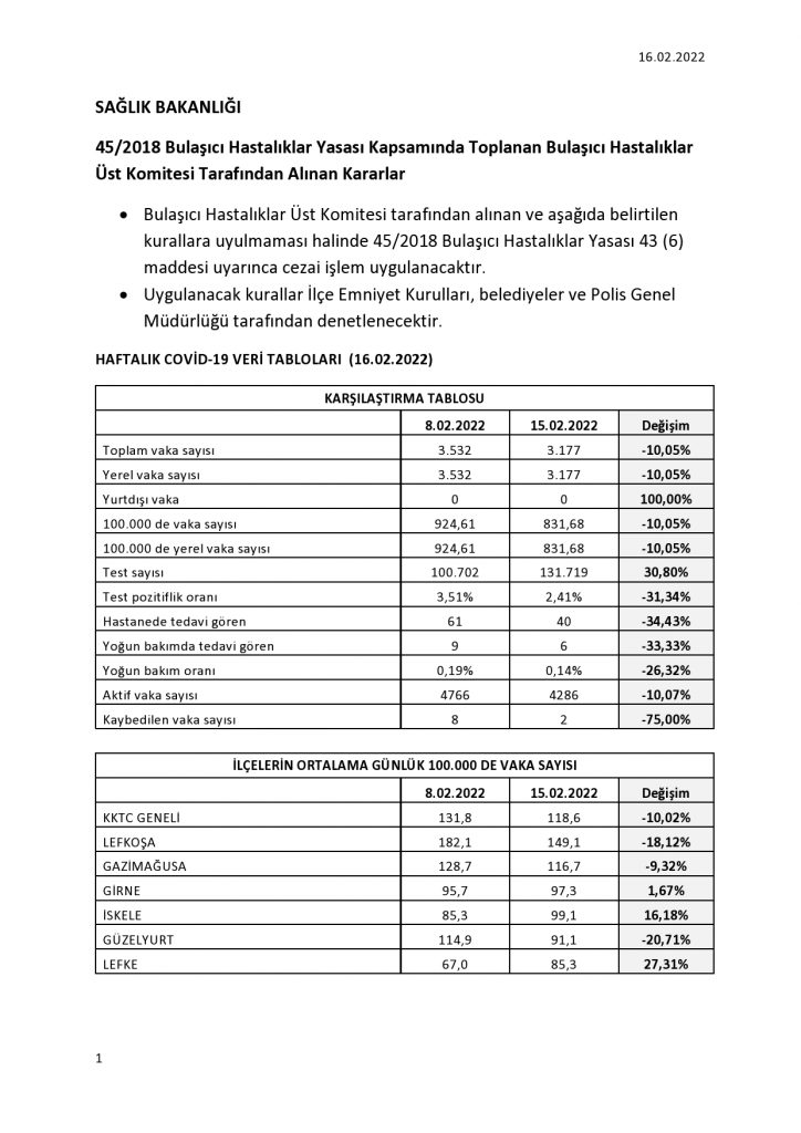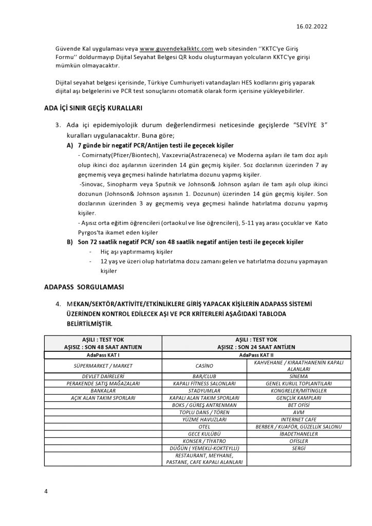 Ada içi geçiş kurallarında ise, ada içi epidemiyolojik durum değerlendirmesi neticesinde geçişlerde “Seviye 3” kuralları uygulanmaya devam edilecek.