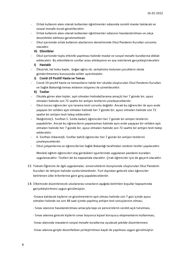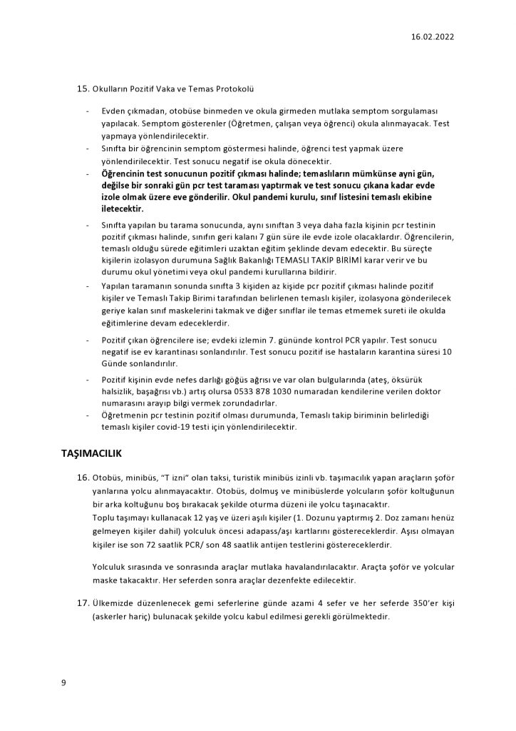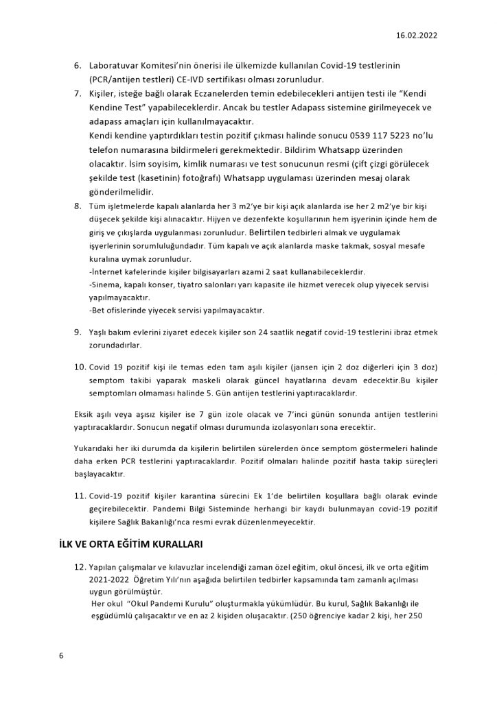 İkinci doz aşılarının üzerinden, 3-7 ay geçmemiş veya geçmesi halinde hatırlatma dozunu yapan kişilerle aşısız orta eğitim öğrencileri, 5-11 yaş arası çocuklar 7 günlük PCR/Antijen testiyle geçebilecek.
