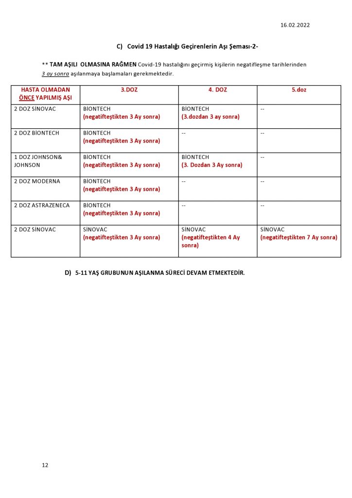 Hiç aşı yaptırmamış kişilerle 12 yaş ve üzeri olup, hatırlatma dozu zamanı gelen ve hatırlatma dozunu yapmayan kişiler 72 saatlik PCR ve 48 saatlik antijen test göstermek zorunda
