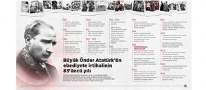 Türkiye Cumhuriyeti’nin kurucusu ve önderi Mustafa Kemal Atatürk, 57 yıllık yaşamında milletinin ve vatanının bağımsızlığı için girdiği her mücadeleyi askeri ve siyasi dehasıyla zaferle taçlandırarak, adını Türk ve dünya tarihine altın harflerle yazdırdı.