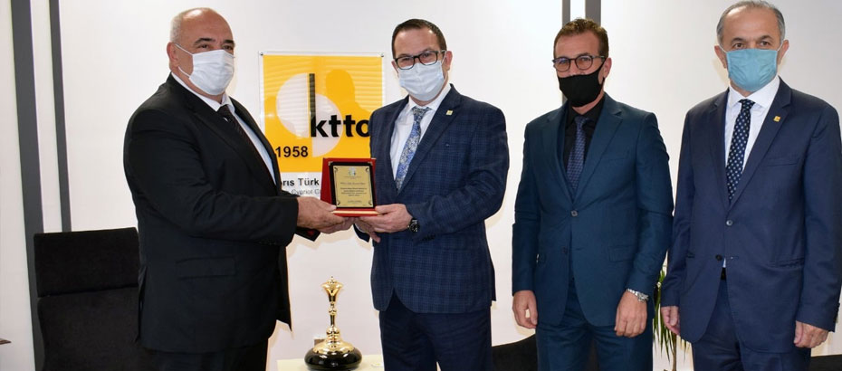 Ziyaret sonunda, Çalışma ve Sosyal Güvenlik Bakanı Dr. Koral Çağman, Kıbrıs Türk Ticaret Odası Başkanı Turgay Deniz’e katkıları için teşekkür plaketi takdim etti.