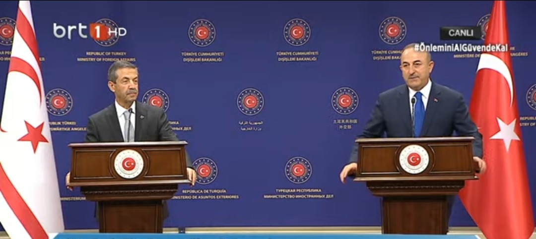 Çavuşoğlu ile KKTC Dışişleri Bakanı Tahsin Ertuğruloğlu, Ankara’da gerçekleştirdikleri baş başa görüşmenin ardından ortak basın toplantısı düzenledi.