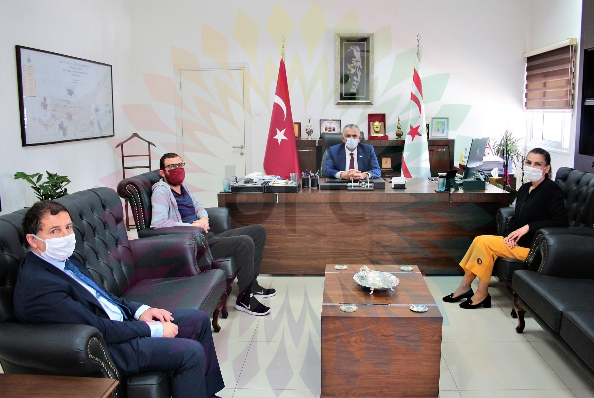 Milli Eğitim ve Kültür Bakanı Nazım Çavuşoğlu, yaşanan pandemi süreci ile ilgili bilgi almak ve değerlendirmelerde bulunmak üzere Kıbrıs Türk Tabibler Birliği Başkanı Dr. Özlem Gürkut ile Halk Sağlığı Sorumlusu Dr. Emre Yusuf Vudalı’yı kabul ederek görüştü.