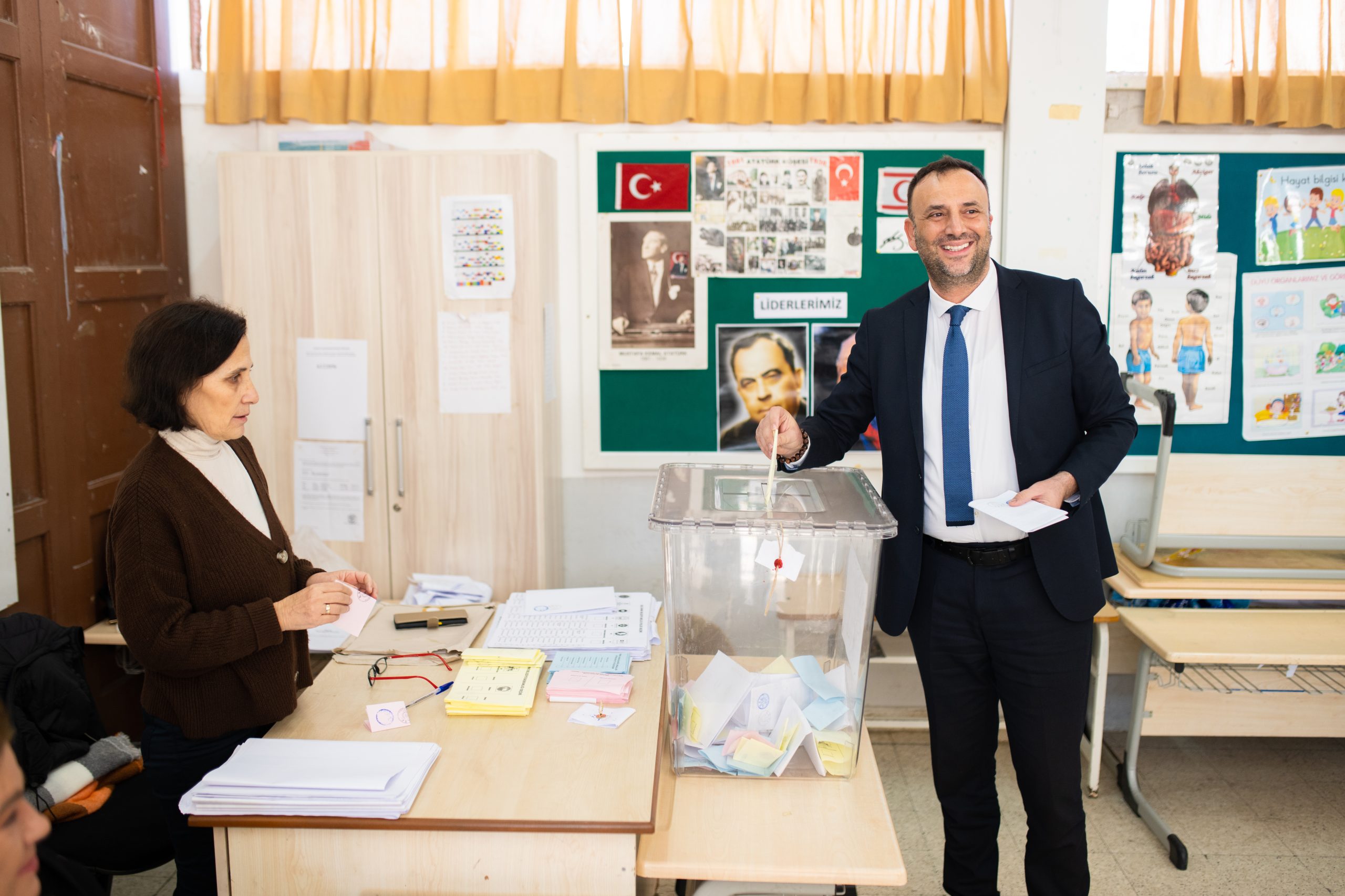 ‘Girne Bağımsız Belediye Başkanı Zeki Çeler, Karaoğlanoğlu İlkokulu’nda 104 numaralı sandıkta oyunu kullandı.