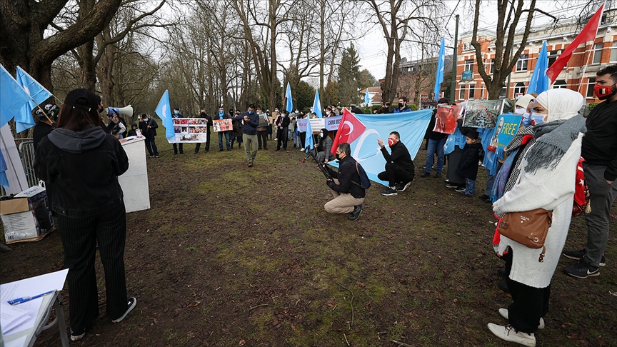 Belçika’nın başkenti Brüksel’de Çin Büyükelçiliği önünde toplanan Belçika Uygurlar Derneği üyeleri ve Türk sivil toplum kuruluşlarının temsilcileri, Doğu Türkistan’daki insan hakları ihlalleri ve Uygurlara yönelik “soykırım ve işkencelere” tepki gösterdi.
