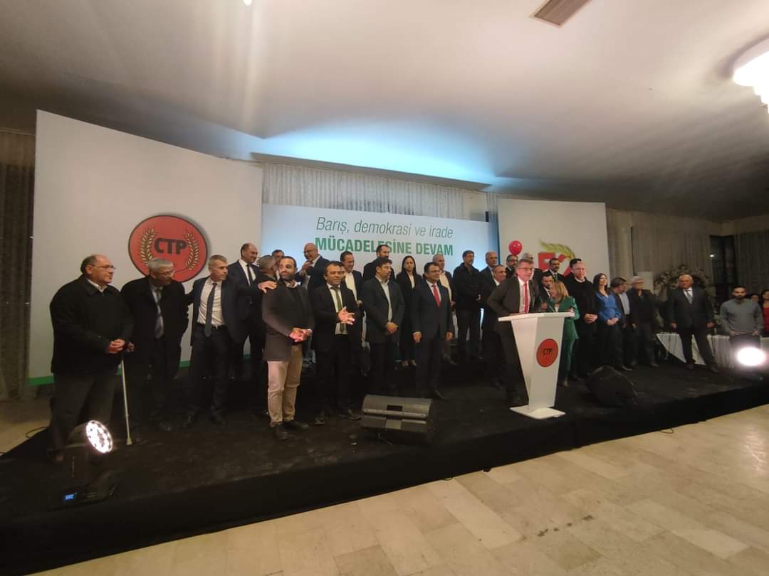 “Barış, demokrasi ve irade mücadelesine devam” sloganıyla düzenlenen resepsiyonda, CTP Genel Başkanı Tufan Erhürman konuşma yaptı.