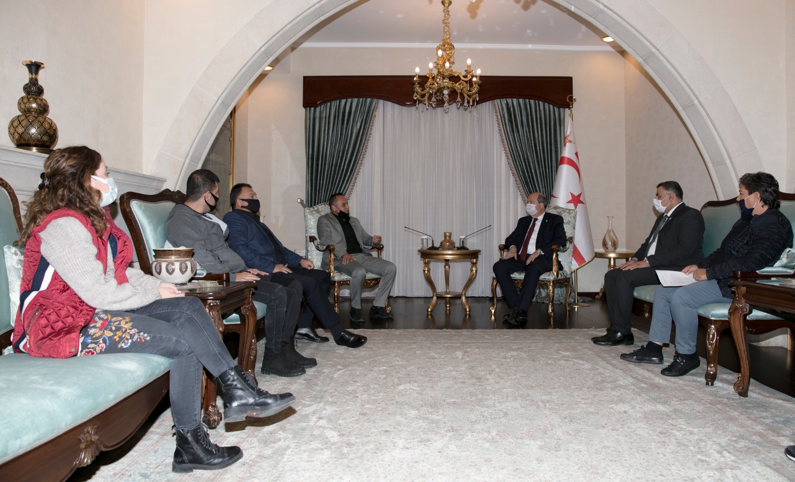 Cumhurbaşkanı Ersin Tatar, Bağımsız Şoför Okulları Birliği Başkanı Emirzade Tilki ve yönetim kurulu üyelerini kabul ederek görüştü.