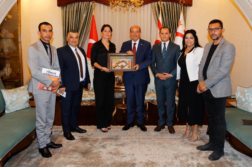 Cumhurbaşkanı Ersin Tatar, Çağdaş Müzik Derneği Başkanı Ersin Tünay ve Azerbaycan Kıbrıs Dostluk Cemiyeti heyetini kabul etti.