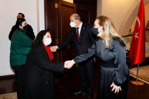 Cumhurbaşkanı Ersin Tatar, eşi Sibel Tatar’la birlikte, pandemi koşullarına uygun bir şekilde, Cumhurbaşkanlığı personelinin, Cumhurbaşkanlığı’nda görev yapan asker ve polislerin yeni yılını kutladı.