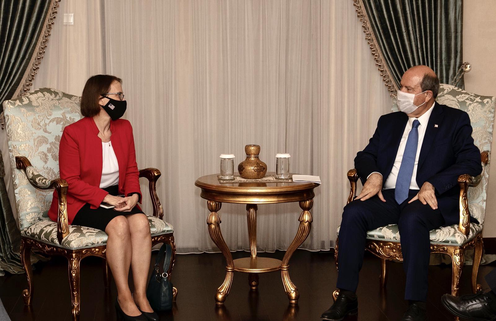 Yaklaşık iki saat süren görüşmede, ABD Büyükelçisi Garber, Cumhurbaşkanı Tatar’ı, Cumhurbaşkanlığı görevine seçilmesinden dolayı kutladı